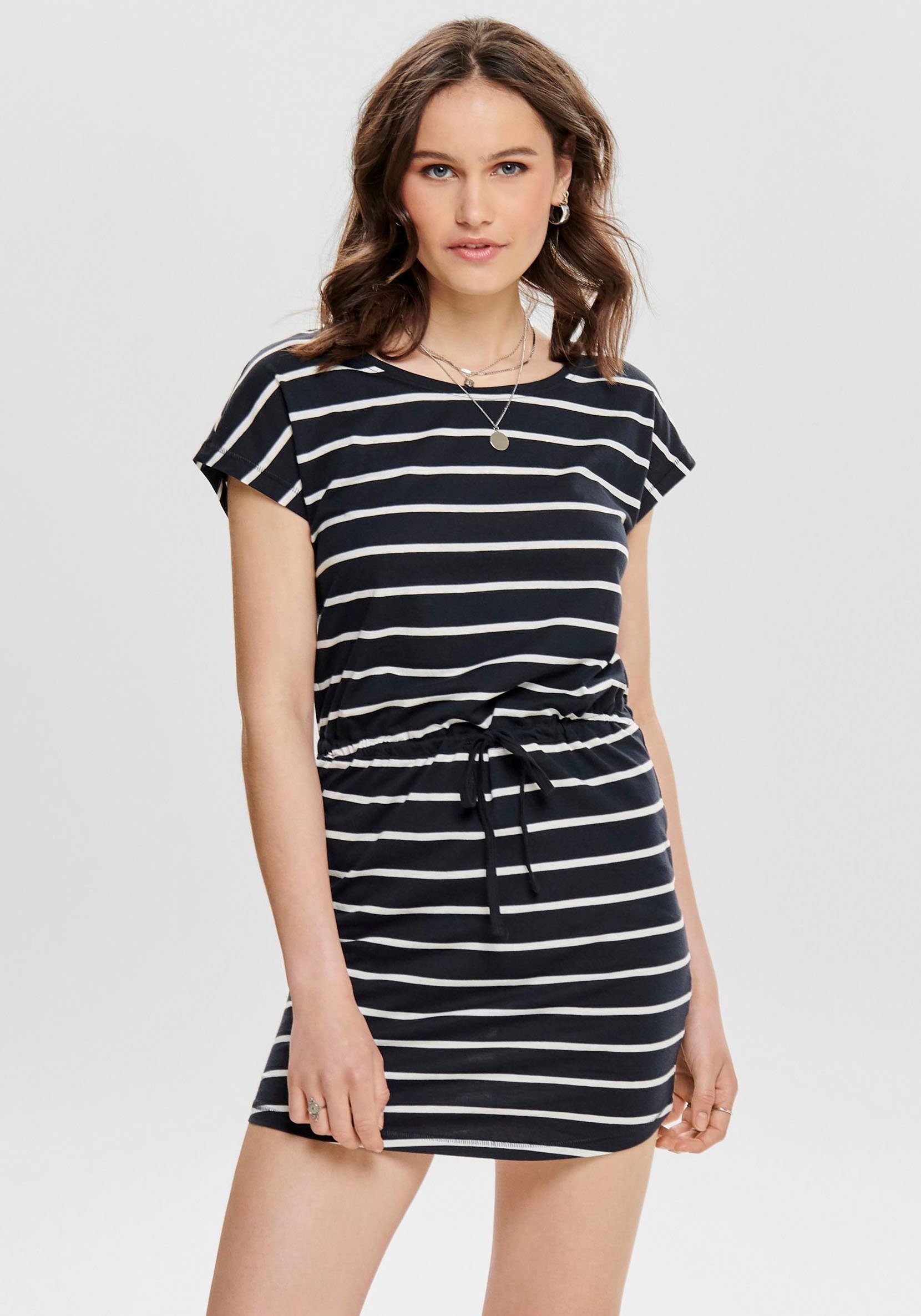 Darueber hinaus findest du bei uns jedoch noch viele weitere elegante Kleider - ob lang oder kurz mit Spitze Pailletten Blumenmustern einfarbig oder bunt sowie rockige Jeanskleider. Suesses Jerseykleid von ONLY Im trendy Streifen-Look Lockere Form mit Tunnelzug in der Taille bei OTTO. Bis zu 40 reduziert Gestreifte Kleider online kaufen bei OTTO Grosse Auswahl Top Marken Ratenkauf Kauf auf Rechnung moeglich Jetzt bestellen.