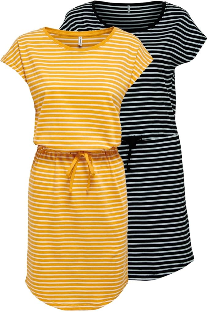 Only Damen Sommer Mini Kleid Onlmay S S Dress 2er Pack Xs S M L Xl Xxl Gestreift Schwarz 100 Baumwolle Amazon De Bekleidung