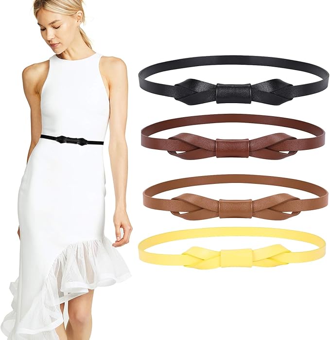 Dunner Gurtel Fur Damen Pu Leder Schmaler Gurtel Fur Kleid Verstellbar Dunn Taillengurtel 4 Stuck Gr One Size Schwarz Kaffee Braun Gelb Amazon De Bekleidung