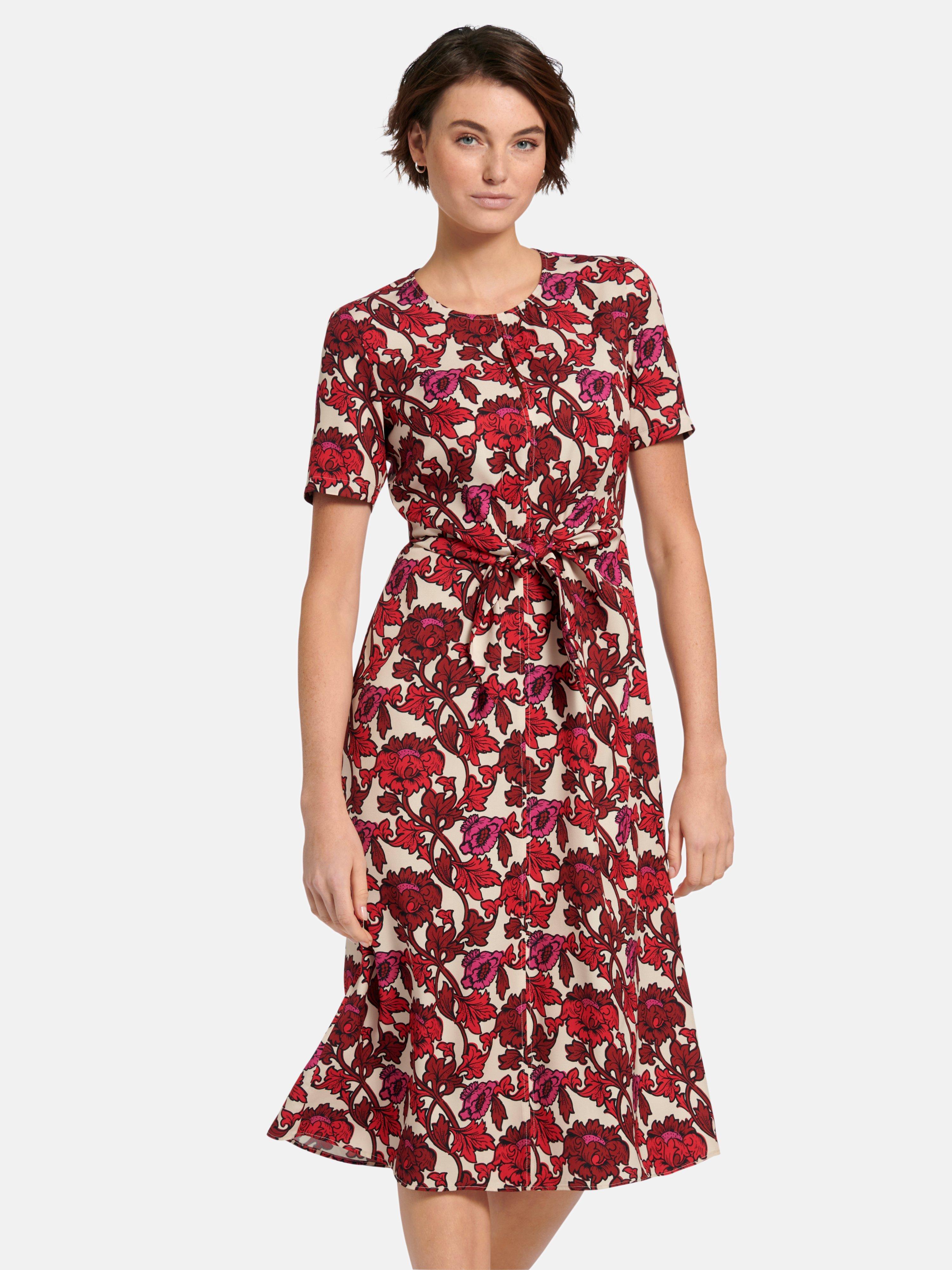 Peter Hahn Kleid Mit Uberschnittener Schulter Mohnrot Multicolor