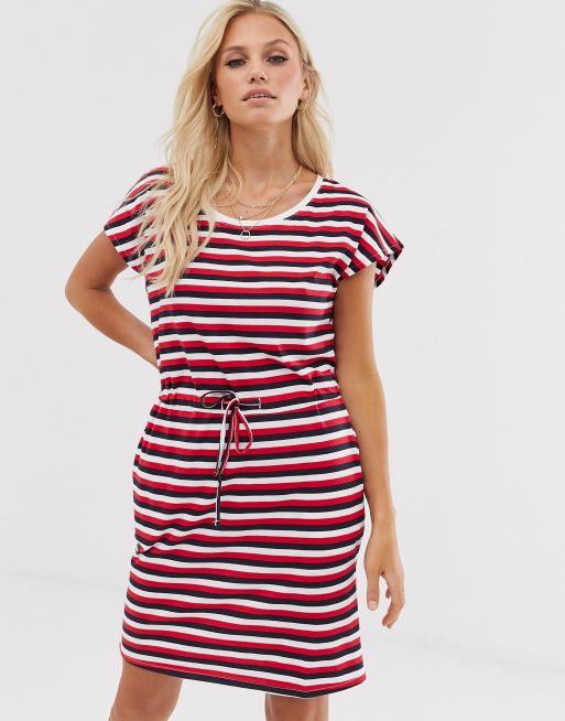 Vero Moda Randig Klanning I Jersey Med Knytning I Midjan Asos