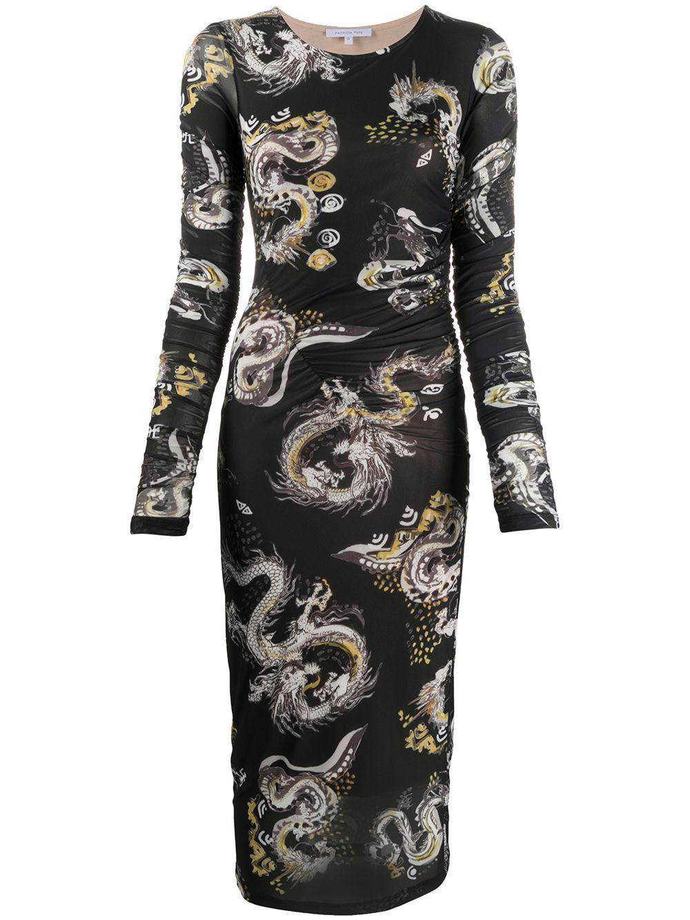 Patrizia Pepe Synthetik Kleid Mit Drachen Print In Schwarz Lyst